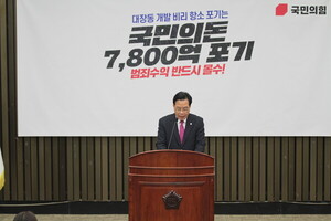 국민의힘이 더불어민주당을 향해 대장동 의혹 국정조사 입장을 오늘까지 공개적으로 밝히라고 압박했다. 협상 과정이 반복적으로 지연되고 있다며 “기다림은 끝났다”고 경고한 것이다.24일 국민의힘 의원총회에서 송언석 원내대표는 최근 패스트트랙 재판 1심 결과를 언급하며 “2019년 공수처법·선거법 개정 강행에 맞선 우리 당의 저항은 정당했다는 점이 시간이 지나며 입증되고 있다”고 밝혔다. 송 원내대표는 공수처 수사 실적과 선거법 개정 후 위성정당 논란 등을 거론하며 “그때의 반대가 정치적 투쟁이 아니라 헌정질서와 의회 절차를 지키기 위한